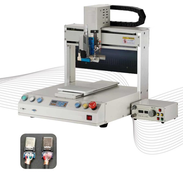 A máquina de processamento de cola UV suporta funções de aplicação e secagem de cola UV, para conectores eletrônicos e cabos de dados.